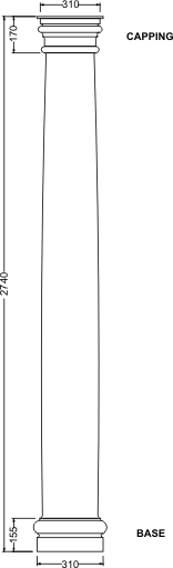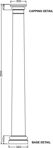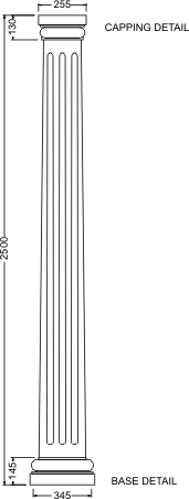 Fluted Round 2500mmStrength: 30 MPaWeight: 265 kg Reinforcement: 4Y12 Vertical bars with R8 stirrups at 200% |