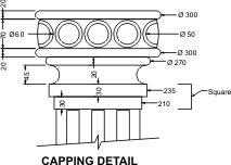 Fluted Square 2100mm, 2500mmStrength: 30 MPaWeight: 2100 - 237 kg 2500 - 286 kg Reinforcement: 4Y12 Vertical bars with R8 stirrups at 200% |