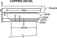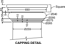 Plain Round Tapered 1200mm, 1500mmStrength: 30 MPaWeight: 1200 - 100 kg 1500 - 119 kg Reinforcement: 4Y12 Vertical bars with R8 stirrups at 200% | ![]() |